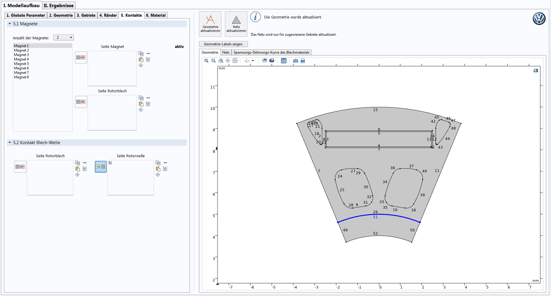“In the development process of electrical machines, one has to fulfill many requirements,” explains Dr. Steffen Rothe, simulation engineer of component development at VW Kassel. “On one hand, the machine has to match electrical requirements for the torque and power. On the other hand, the rotor has to possess a certain durability, where the centrifugal force is the major load for the rotor.”